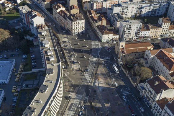 Du début du cours Lafayette à la fin de la rue Léon Blum, l’espace public est métamorphosé. D’une façade à l’autre, tout a été réhabilité : les trottoirs, l’éclairage public, les espaces verts, et bien sûr la chaussée sur laquelle est intégrée le couloir réservé aux bus et l’aménagement dédié aux cyclistes.