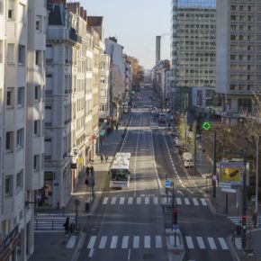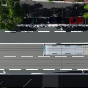 Manquent évidemment la ligne aérienne de contact (qui alimentera les trolleybus) et les finitions (mobiliers urbains, revêtements de voirie définitifs…), mais on visualise pour la première fois le principe d’aménagement réalisé.