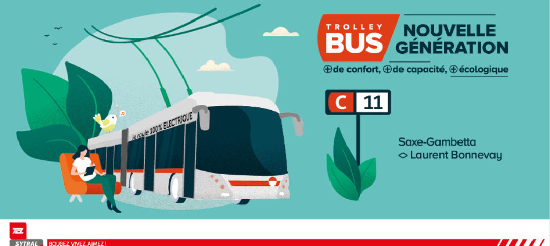 Depuis le 30 août, la ligne C11 reliant Laurent Bonnevay à Saxe-Gambetta est progressivement équipée de nouveaux trolleybus articulés 100% électriques. Il s’agit de la deuxième ligne du réseau (après la ligne C13) à être dotée de la nouvelle technologie IMC (In Motion Charging) la ligne C11 passe également en trolleybus articulé.