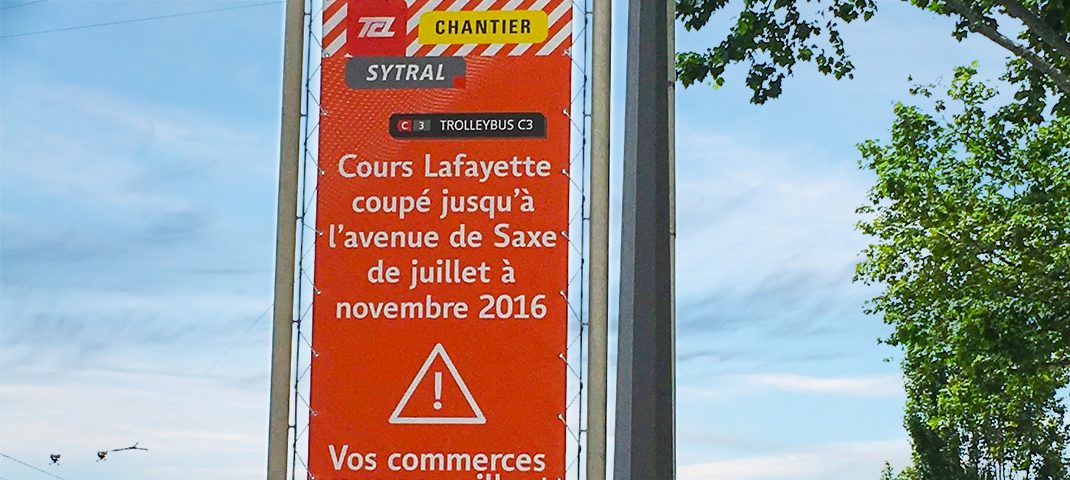 Pendant la durée des travaux, pour la direction Vaulx-en-Velin La Grappinière, l’arrêt reporté se situe rue de Bonnel, arrêt « Saxe Bonnel ». Pour la direction Gare Saint Paul, l’arrêt de report est effectivement « Saxe Lafayette ».