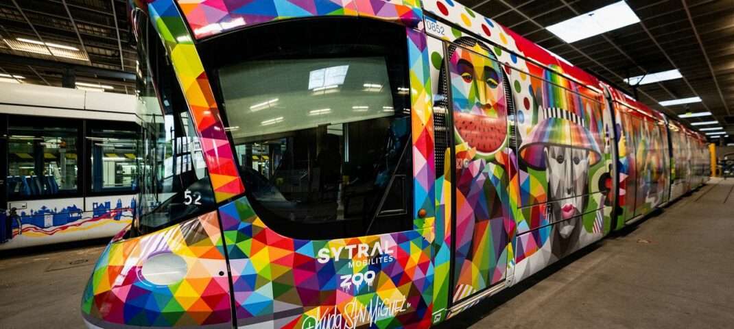 SYTRAL Mobilités, qui œuvre pour la valorisation de l’art et de la culture dans les transports en commun, déploie depuis décembre 2021 un projet artistique d’envergure sur le réseau TCL qui vise à habiller des trolleybus et des tramways d’œuvres de street-art créées par des artistes du collectif ZOO ART SHOW.