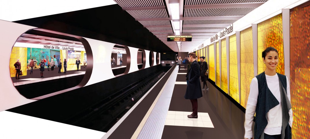 Dans une première phase, le programme commence par la station Hôtel de Ville, dont la rénovation est conçue par l’agence [ siz’- ix ]. C’est la station « test ». Puis viendront, en 2015 et 2016, Bellecour Part-Dieu et Charpennes traitées par l’agence METROPOLIS.