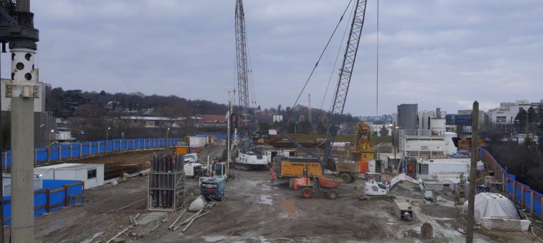 Quelques centaines de mètres après la future station terminus du métro B – Saint-Genis-Laval Hôpitaux Sud – on découvre une autre base-vie, un autre site où des équipes travaillent à préparer l’arrivée du tunnelier, prévue cet été.