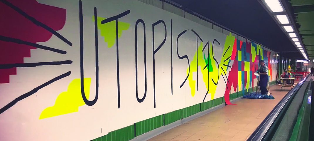 Pour le métro lyonnais, des sérigraphies préparées « in situ » ont été assemblées pour composer une fresque murale très colorée.