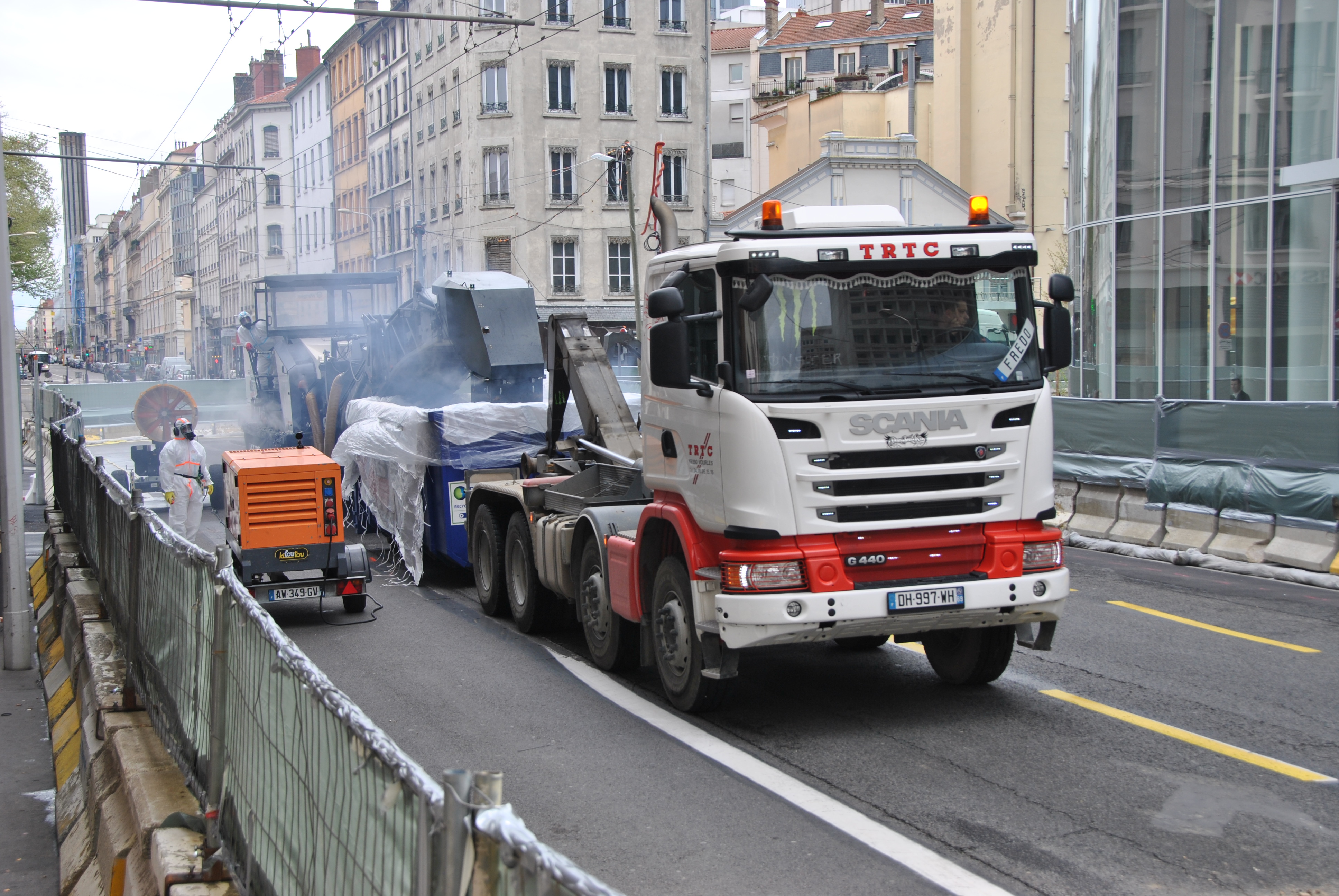 Le chantier de désamiantage du cours Lafayette sera achevé fin mai. Deux des quatre phases ont déjà été menées à bien par l’entreprise CARDEM qui rabote les 7 centimètres de la chaussée avec les précautions qui s’imposent : un chantier spectaculaire qui ne présente aucun risque.