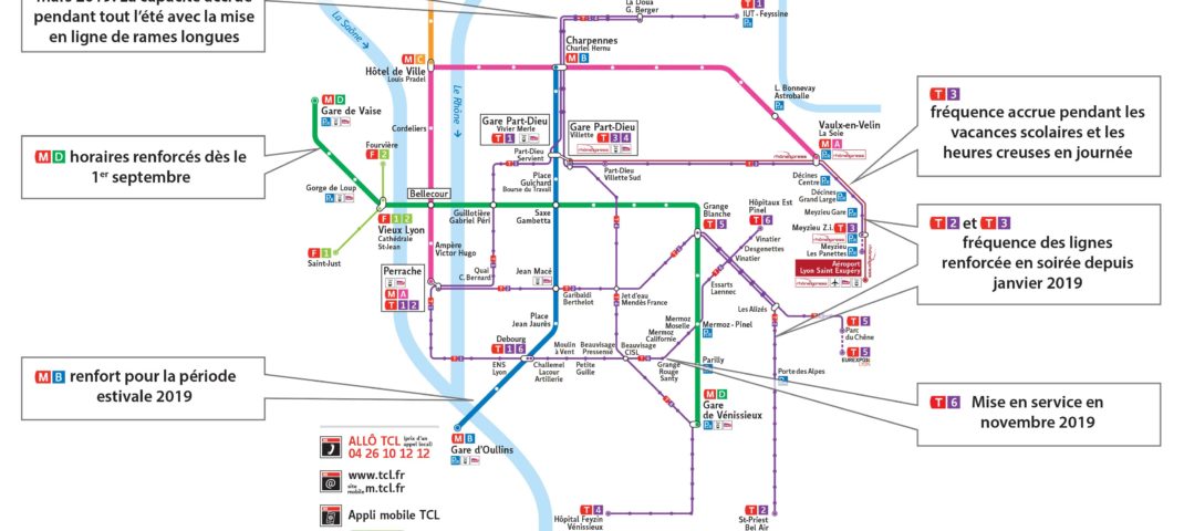Le SYTRAL finance ces renforts d’offre à hauteur de plus de 6 M€. Ci-dessous les lignes de métros et de tramways…