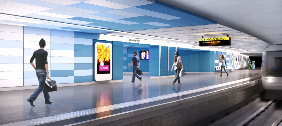 L’agence Metropolis Architectes Associés a travaillé sur la couleur et la variation de sa densité : le rouge pour la ligne A, le bleu pour la ligne B et le blanc. Cette dernière apportera unité et luminosité et créera des dégradés qui annonceront les entrées, sorties ou changements de direction. Ce travail chromatique permettra à tous les usagers de se repérer facilement dans la station.