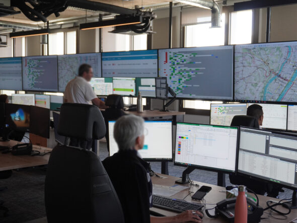 SYTRAL Mobilités modernise ses infrastructures et investit dans de nombreux outils et technologies d’exploitation et de sûreté. Le nouveau Poste de Commandement Bus, opéré par Keolis Bus Lyon, a pris ses quartiers le mardi 17 juin, dans les nouveaux locaux mis à disposition par SYTRAL Mobilités, à Villeurbanne – Carré de Soie.