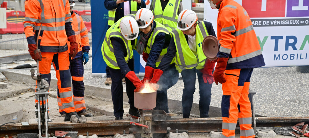 Le 7 octobre dernier, le projet franchissait un nouveau cap. Ce jour-là, Vanina Nicoli, préfète secrétaire générale de la préfecture du Rhône, préfète déléguée pour l’égalité des chances, et Bruno Bernard, président de la Métropole de Lyon et de SYTRAL Mobilités, accompagnés du maire de Lyon, Grégory Doucet, et des maires de Vénissieux et Saint-Fons, Michèle Picard et Christian Duchêne, procédaient à la première des 2 300 soudures de rails de la future ligne T10. « En soudant ce rail aujourd’hui, nous soudons aussi les liens d’un territoire qui se transforme, plus connecté, plus résilient et qui prépare son avenir », témoignait Vanina Nicoli.