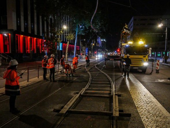 Les travaux préparatoires sont achevés, et depuis le 6 octobre une opération minutée se déroule pendant 7 semaines : la création de la zone de retournement des tramways, autrement appelée « virgule », après le nouveau terminus de T2 à Montrochet.