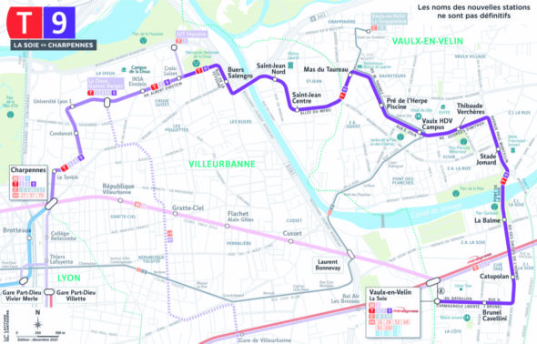 D’ici 2026, le projet de la nouvelle ligne de tramway T9 permettra de relier en 36 minutes le pôle d’échanges multimodal de Vaulx-en-Velin – La Soie à Charpennes avec la création de 12 stations.