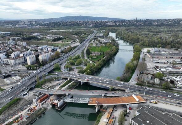 Les chantiers des lignes T9 et T10 s’accompagnent de travaux de taille : la poursuite de la construction du nouvel ouvrage d’art en parallèle du pont du Roulet à Villeurbanne et le réaménagement complet du pont Marcel Sembat à Saint-Fons.