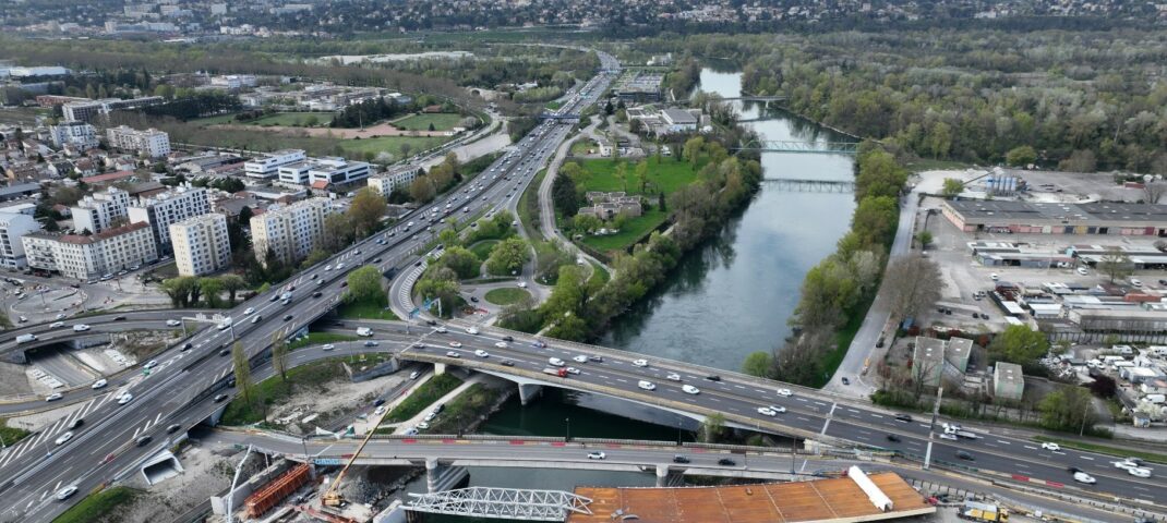 Les chantiers des lignes T9 et T10 s’accompagnent de travaux de taille : la poursuite de la construction du nouvel ouvrage d’art en parallèle du pont du Roulet à Villeurbanne et le réaménagement complet du pont Marcel Sembat à Saint-Fons.