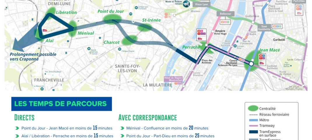 Les nombreuses correspondances offertes à Perrache (TER, métro A, Tram T1/T2) et Jean Macé (TER, métro B, tram T2) favoriseront l’intermodalité et offriront aux usagers une desserte efficace sur l’ensemble de la Métropole.