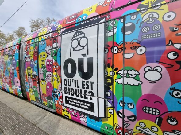Le terminus de la ligne T1 « IUT Feyssine » a pris des airs de fête le 13 avril. Une rame de tramway a été entièrement décorée aux couleurs de Villeurbanne capitale française de la culture avec un jeu « où qu’il est bidule ? » qui incité les voyageurs à chercher (et trouver) le personnage caché. Elle circulera principalement sur la ligne T3 !